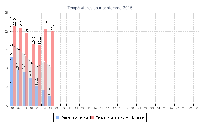 | 07 | 11.6 °C | 22.1 °C | 16.3 °C | 6.6 km/h (27.7 km/h) | NO |