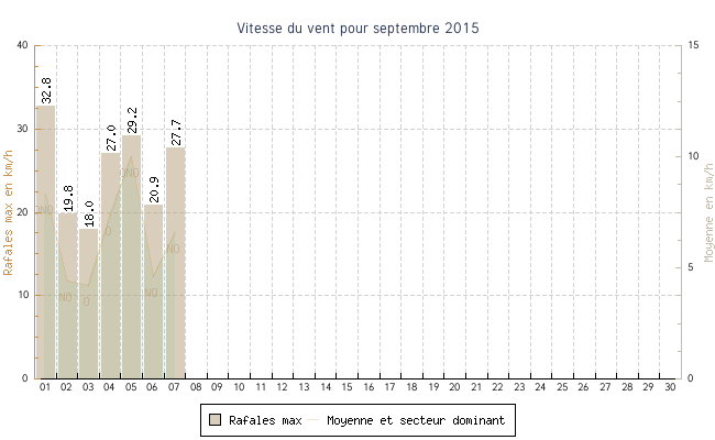 | min | max | moy | Vitesse (rafales) | Secteur | ||